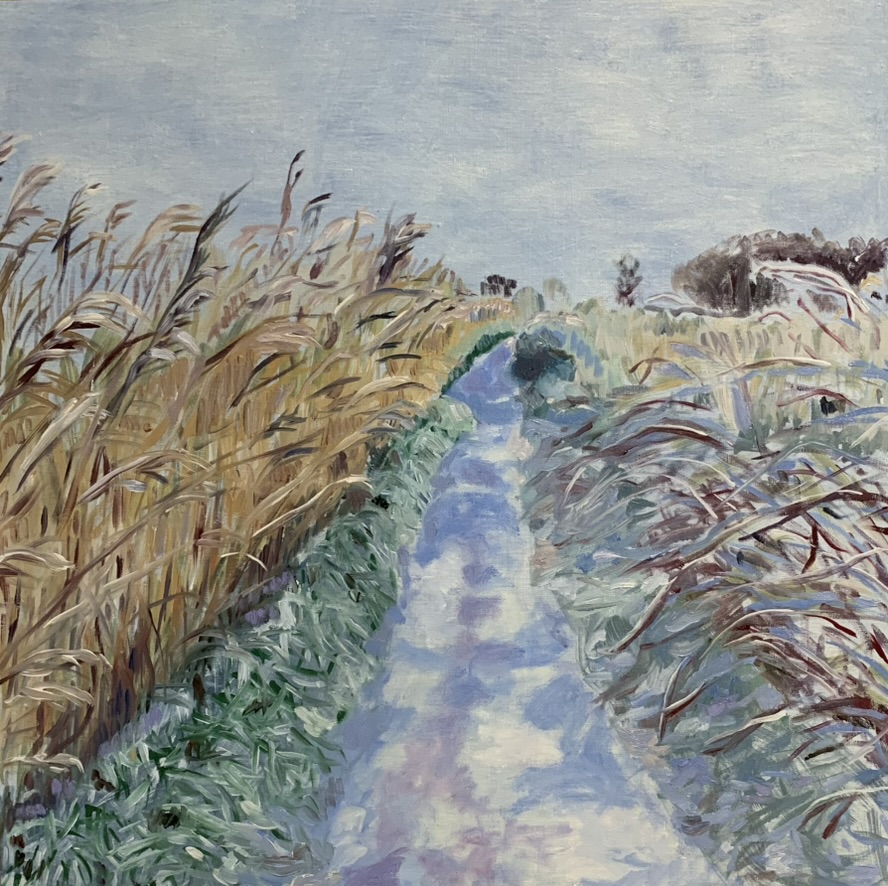I have been making paintings about the Suffolk coast and am inspired by the abundance of nature we are lucky to have here. I work from images and drawings that I make on my walks and then work these up in the studio. Since stopping work with my textile designs in 2020 I have exhibited as part of mixed gallery shows as well as holding several solo shows. I trained at The Slade School of Art in the early 1990s.